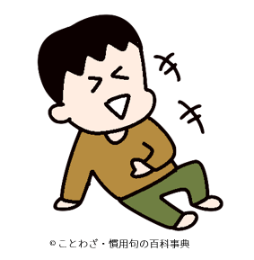 だから、このことわざは「大笑いをする」っていう意味になるんだ。例えば、お友達の面白い話を聞いて、すごく笑ったときや、コメディ番組で大笑いしたときなどに使う言葉なんだよ。