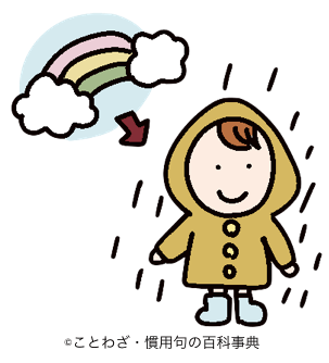 これは、朝の虹が大雨の前兆、つまりおおごとの予兆やな。これを見たら、傘だけじゃなくてレインコートも準備せなあかんねんな!