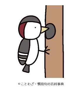 啄木鳥は木の幹に穴を開けて、その中に虫を探したりすることで知られているよね。このことわざは、啄木鳥の子供が、卵からかえったばかりの時点で、木をつつく動作をするような様子をイメージして作られたものだよ。