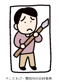 【二間の所で三間の槍使う】の意味と使い方や例文(類義語)