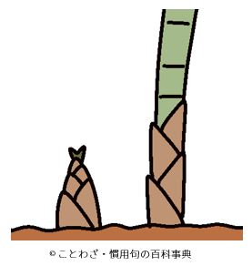 「筍の親勝り」って、子供が親をあっという間に追い抜く様子を、竹の子が親竹をあっという間に追い抜く様子に例えているんやな。