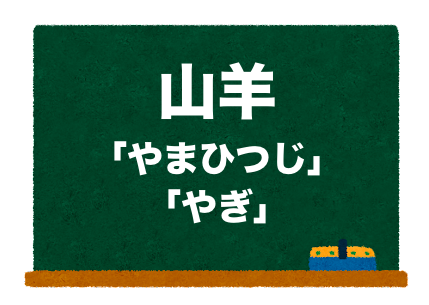 - 山羊の読み方は「やぎ」が正しい。