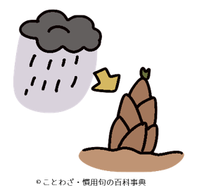 「雨後の筍」っていう表現はね、雨が降った後に、筍(たけのこ)がどんどんと土から出てくる様子から来ているんだ。筍は雨が降ると急にたくさんの場所から出てくることがあるんだよ。